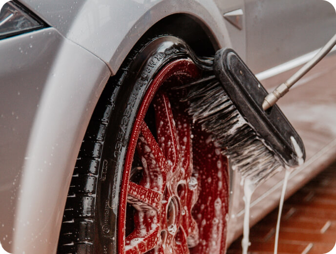 We scrub and polish tires and rims to remove brake dust and dirt, leaving them looking sleek and well-maintained.